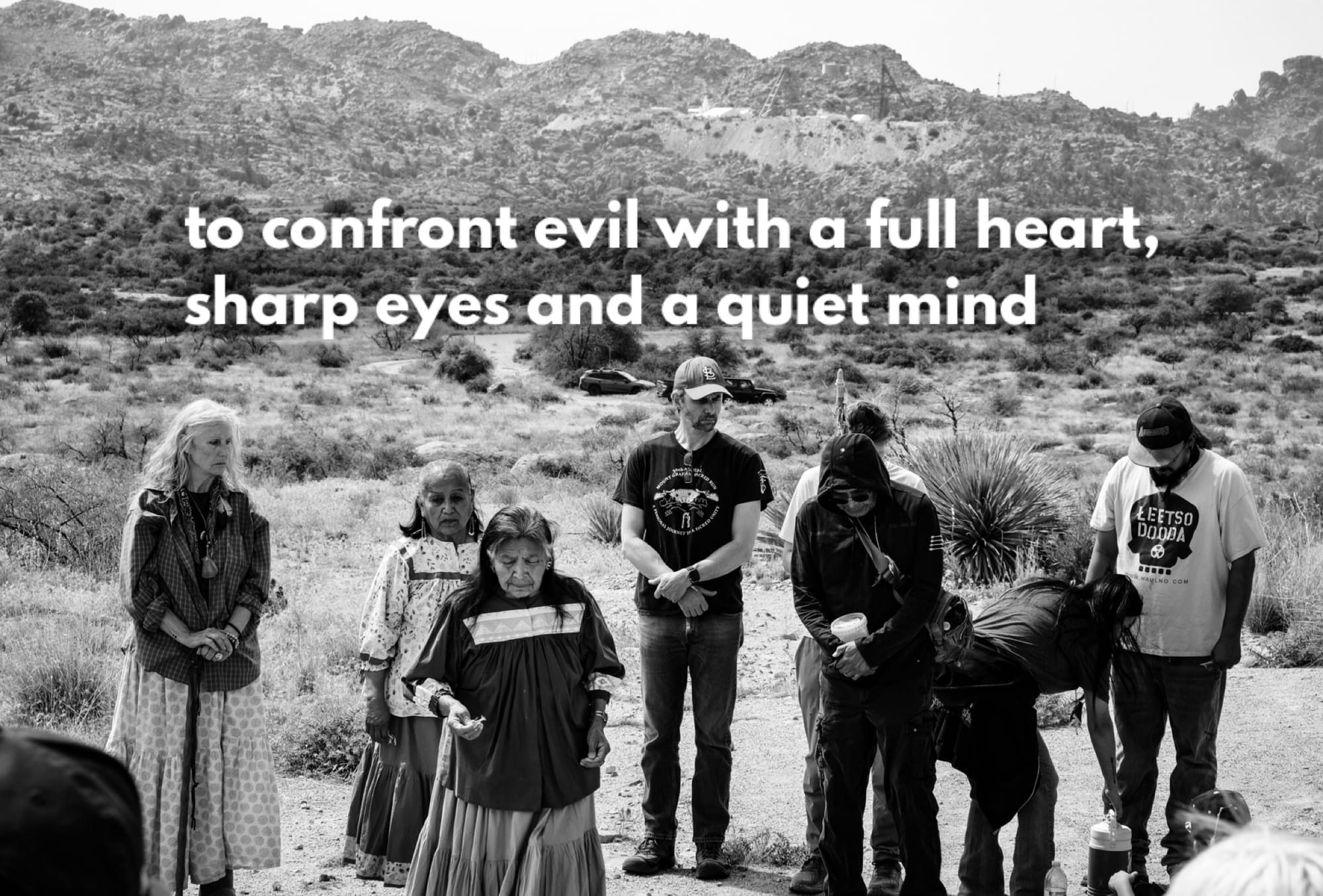 The Apache Stronghold says the fight is not over to protect Oak Flat and all of creation. Many gathered for ceremony at the original Holy Ground in San Carlos on Saturday and then on Sunday walked with prayers to Ga'an canyon on the East Rim of Oak Flat to pray not only for Oak Flat but for all people and all places that are suffering and dying because of the evil extractive and exploitive ways of Capitalism.
