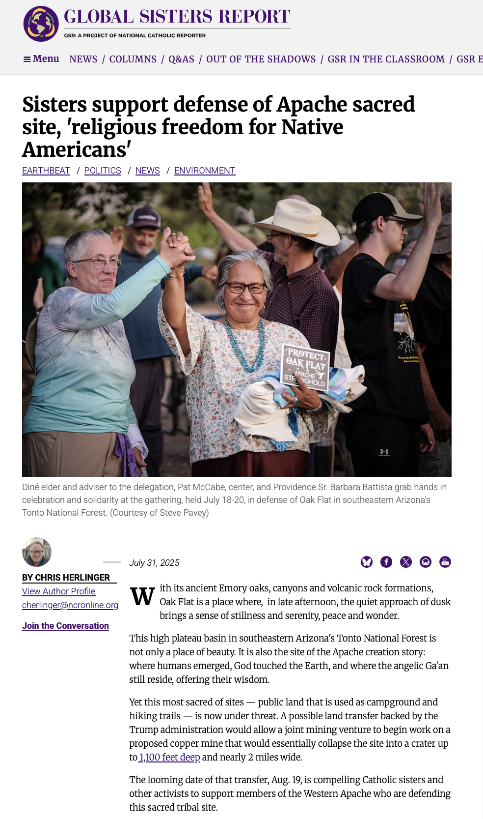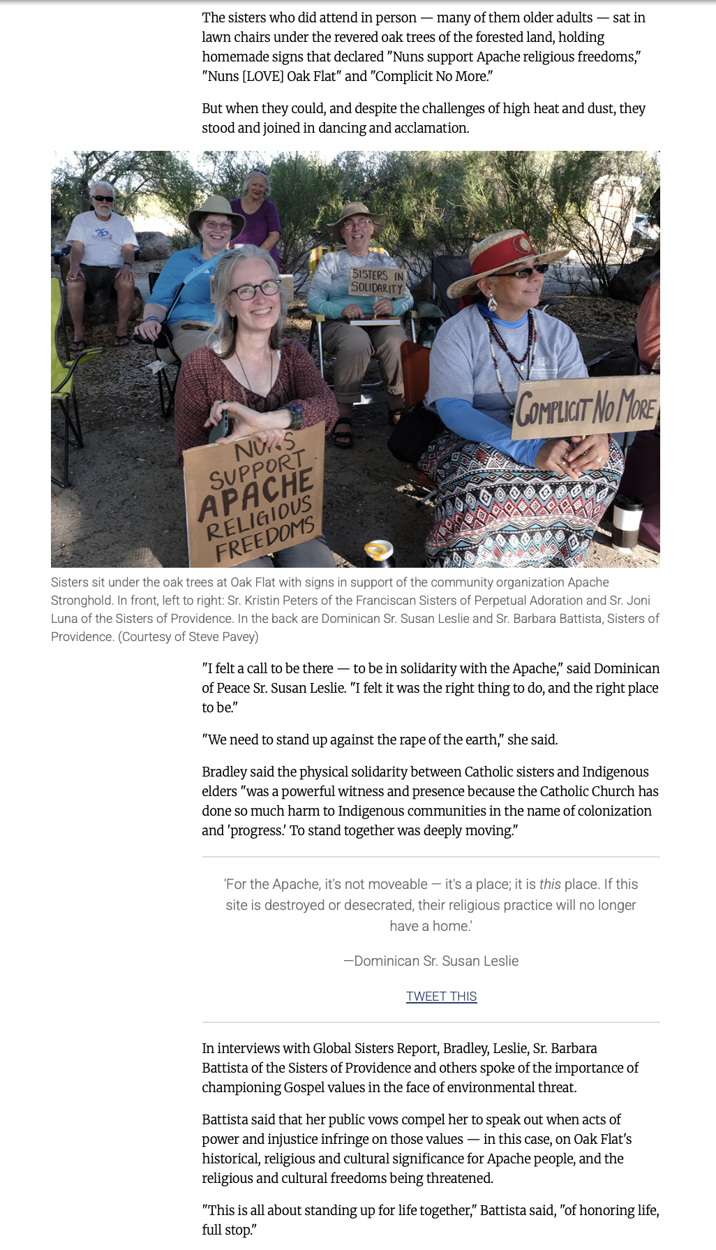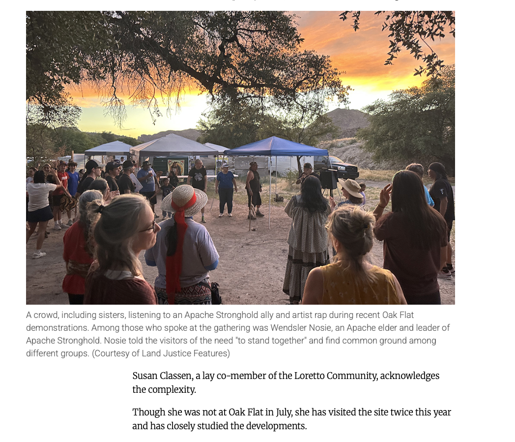 Reposting: A Report by Catholic Sisters who came to Oak Flat in Support of Apache Freedom of Religion REPOSTING from Global Sisters Report who I shared photos with for their important witness in defense of protecting Oak Flat and Apache freedom of religion -- https://www.globalsistersreport.org/environment/sisters-support-defense-apache-sacred-site-religious-freedom-native-americans?link_id=4&can_id=a933a477746f623dd2d7928a4401d98b&source=email-replay-links-jubilee-as-medicine-for-the-times&email_referrer=email_2832000&email_subject=replay-next-steps-oak-flat-joint-shareback-from-the-apache-stronghold-solidarity-delegation&&